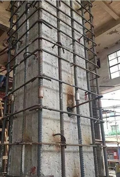 對鋼筋混凝土柱外包型鋼、扁鋼焊成構架并灌注結構膠粘劑,以達到整體受力,共同工作的加固方法。